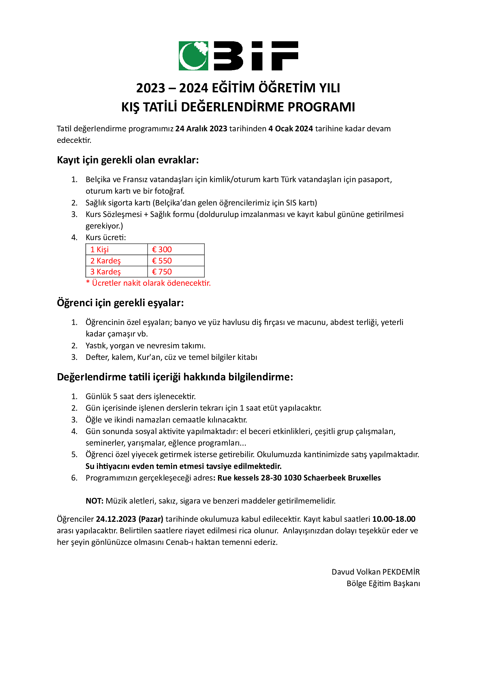 BİF Eğitim Başkanlığı olarak "Kış Tatili Değerlendirme Kursu" düzenliyoruz.